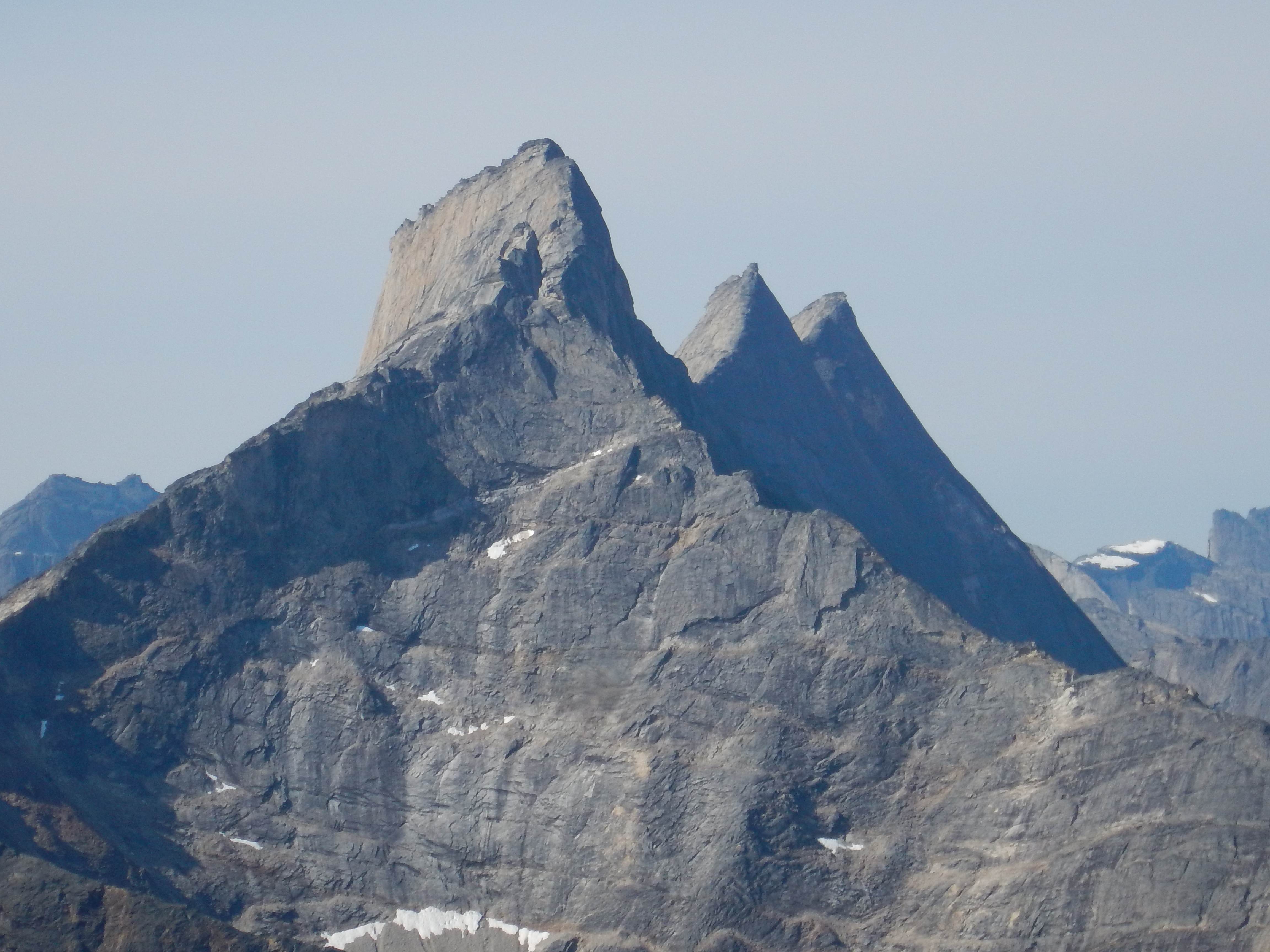An end-on view of the peaks that separate the Aiyagomahala and Arrigetch valleys.