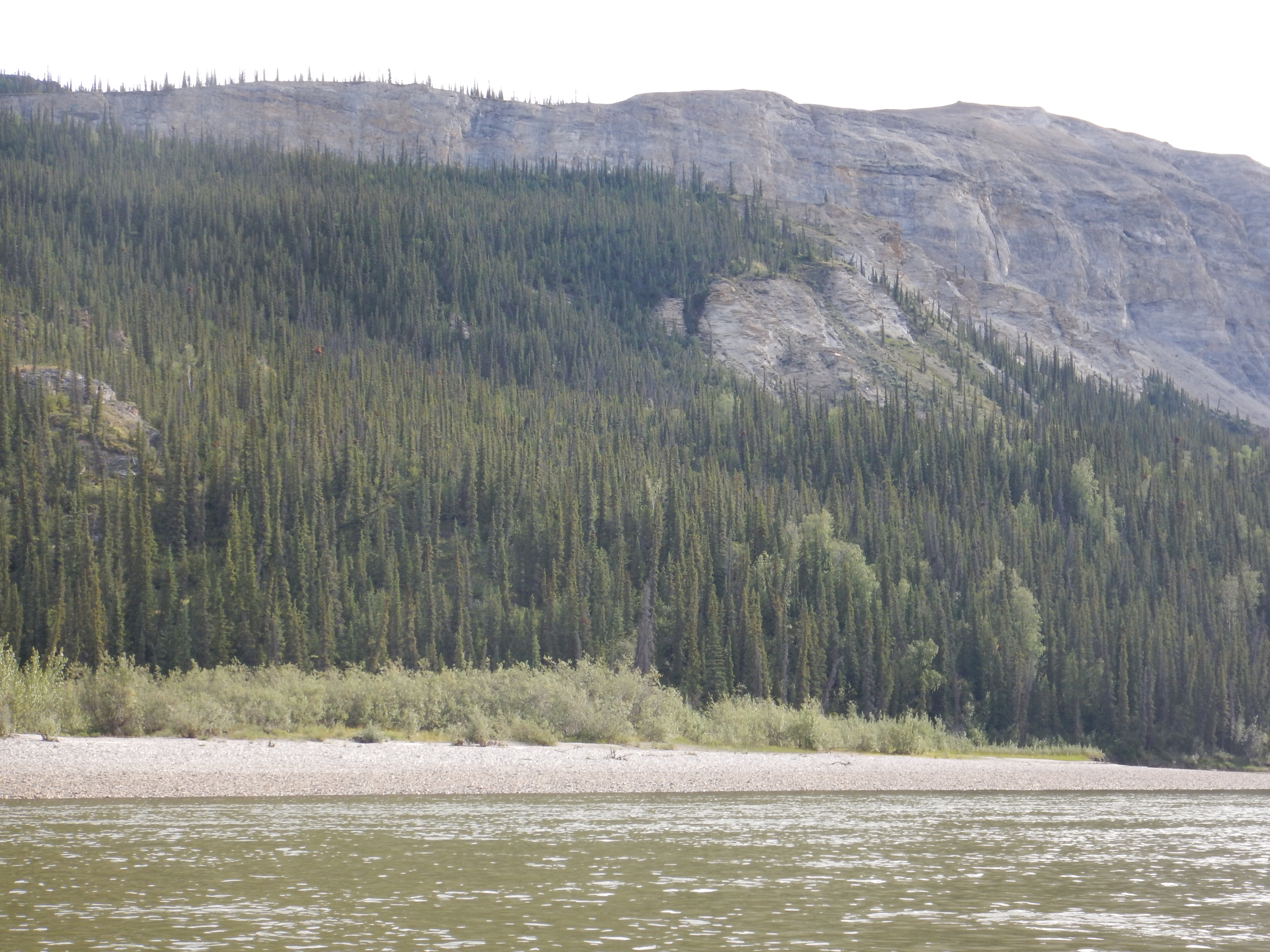 Early on Day 12 I was paddling in front of the others when I was lucky enough to see a magnificent Arctic Wolf on this shingle bank, from my boat. It was a beautiful creature, very large and seemingly healthy, with near white fur. It watched me approach and then turned and trotted off into the bushes. I wasn’t quick enough to get a photo of it, and unfortunately Pete and Matt missed its brief appearance.