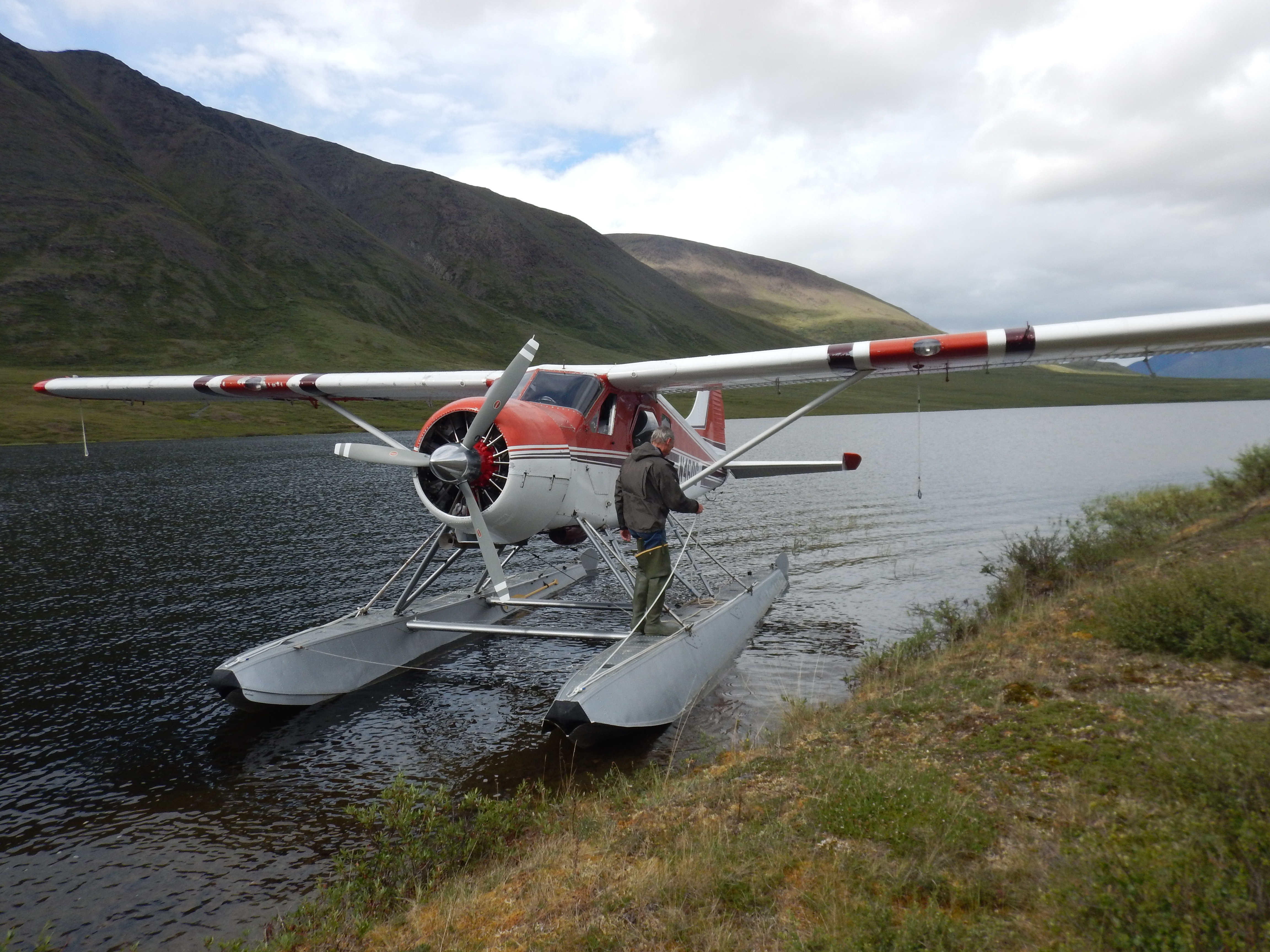 We flew by Wright Air from Fairbanks to Bettles on the morning of Day 1. After revising our plan in discussion with the rangers at Bettles, we were dropped off by Bettles Air Service in their beautiful 1952 Beaver towards late afternoon at Gaedeke Lake, near the Continental Divide, and after walking across the tundra for no more than half an hour to find a decent campsite, we decided to climb one of the nearby unnamed peaks for views to the north beyond the Continental Divide.