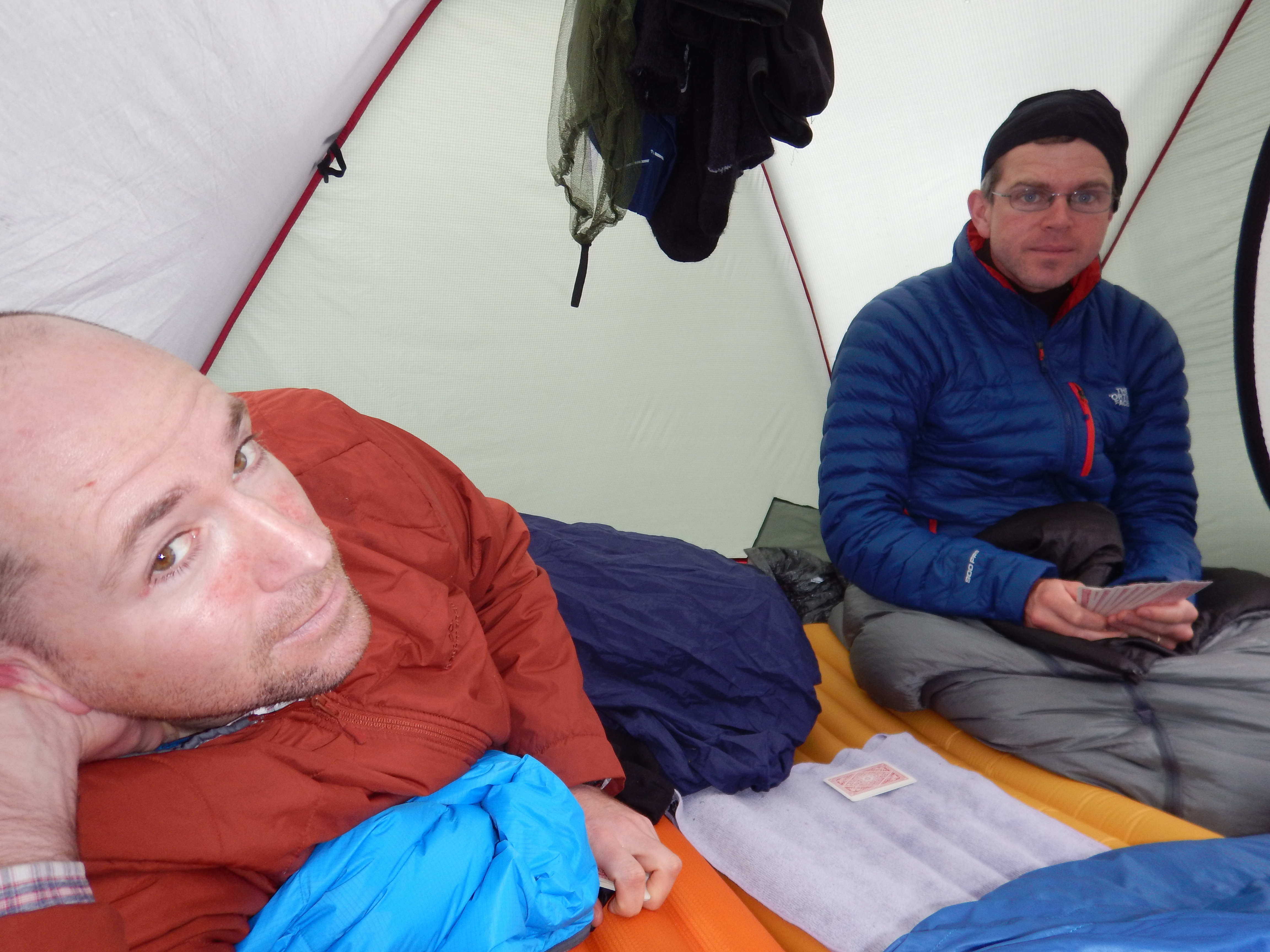 The weather continued to deteriorate through the evening of Day 2 and by the morning of day 3, it was raining heavily. The rain was settling as snow just a couple of hundred metres up the valley sides. We knew that progress would be cold and difficult in the steady rain, and we had time to spare in our schedule, so we decided to sit day 3 out in the tent. This proved to be a great decision because the rain did not relent all day, and on days to come, the weather gradually improved and warmed.