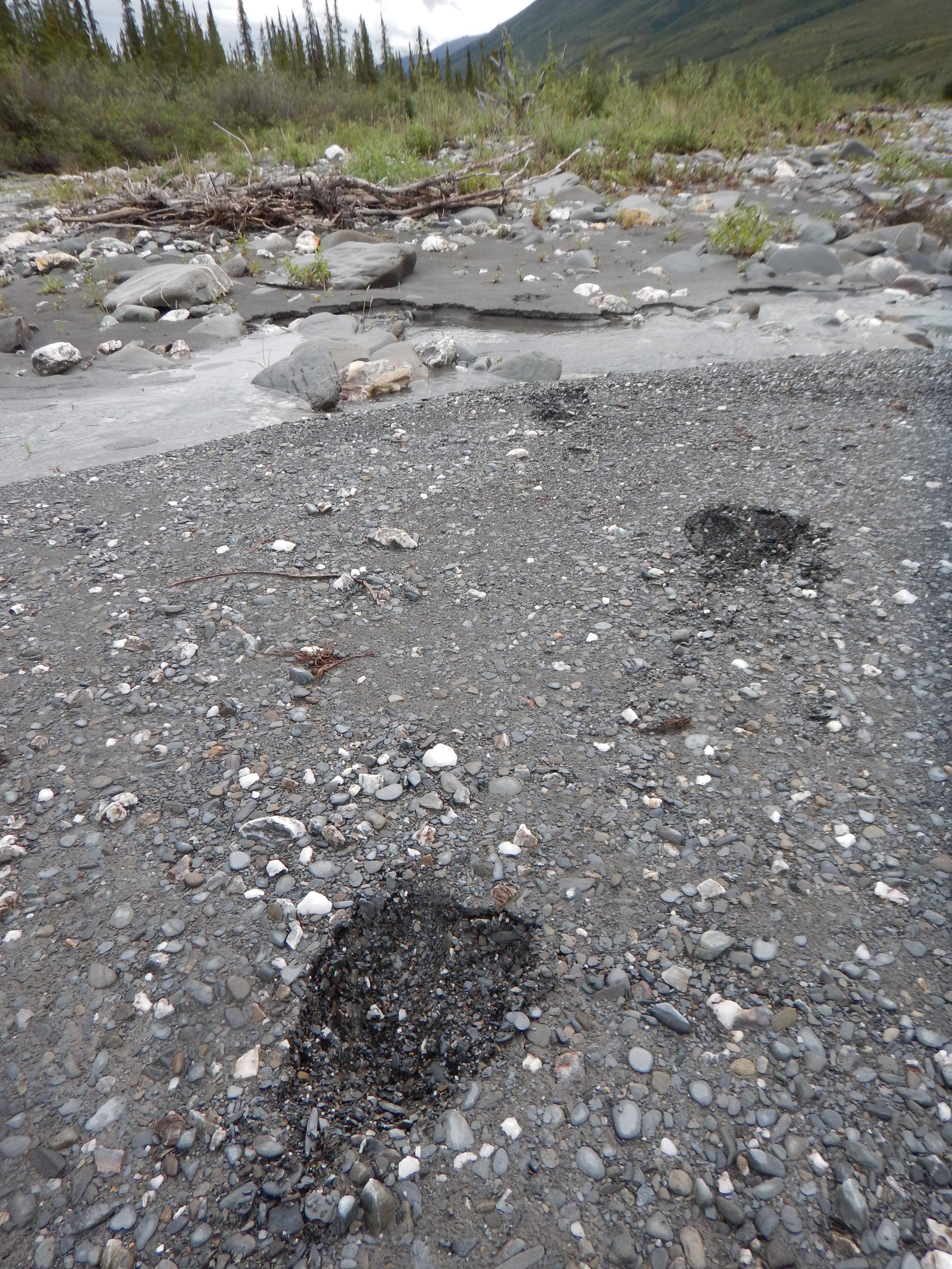 Not a great photo, sorry, but that’s a Bald Eagle in the lower centre. It watched us paddle towards it, then glided down from its perch in a small Spruce, skimmed the shingle bank and found a fresh perch 100m downstream.