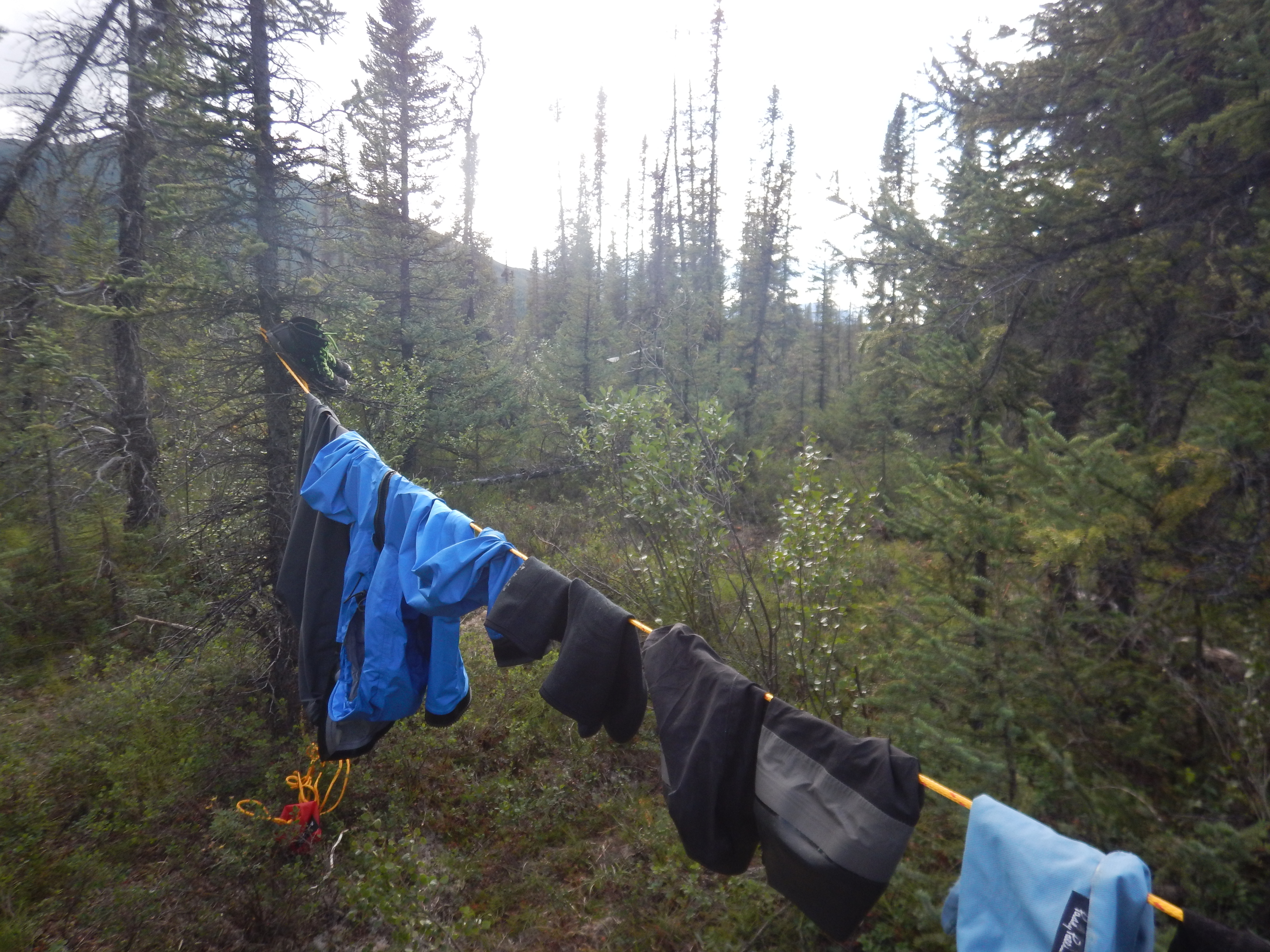 Day 3: we emerged from the tent only briefly as it rained incessantly. Our disciplined approach to cooking and eating dissolved here; we took a calculated risk on reheating freeze-dried food in the vestibule of the tent, but still stored our food 100m away.