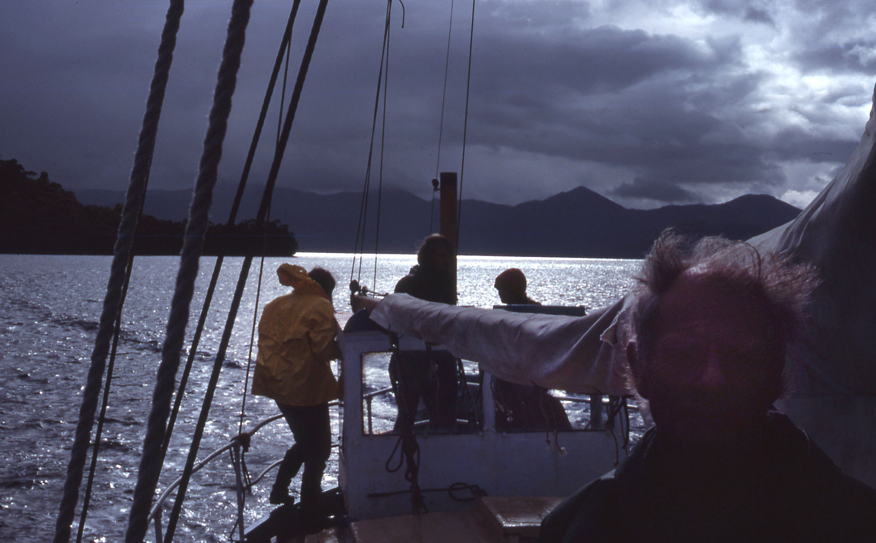 We eventually forced our way through the then untracked Moulters Gap and walked in to Melaleuca from the east. As we approached Melaleuca on one of those days when stinging squalls are separated by shafts of inspirational slanting sunbeams, a figure approached to meet us half way across the final button grass plain. It was Deny King. He said he had downed tools and came out to meet us because in all his life there he’d never seen a party of walkers approach from that direction before. He was genuinely curious about where we’d come from and how we’d found the going. He shared a few stories about his own forays across Bathurst Harbour. Deny also remembered me from our first meeting two summers before, when I walked in from Cockle Creek and ended up exiting the Southwest via the Yoyo Track. Although I was just a young boy in awe of this living legend, he was very respectful and interested in our humble recreational efforts. He was such a kind host to us, particularly on this second visit to Melaleuca. We had spent far too long fighting our way down the Old and around the Ray, and were quite low on food. Deny gave us wonderful fresh bread he’d baked, loaded with strawberry jam, made from his Melaleuca strawberries. Deny kindly ferried us on his boat to Bathurst Narrows the next morning, to commence our journey back to Scott’s Peak.