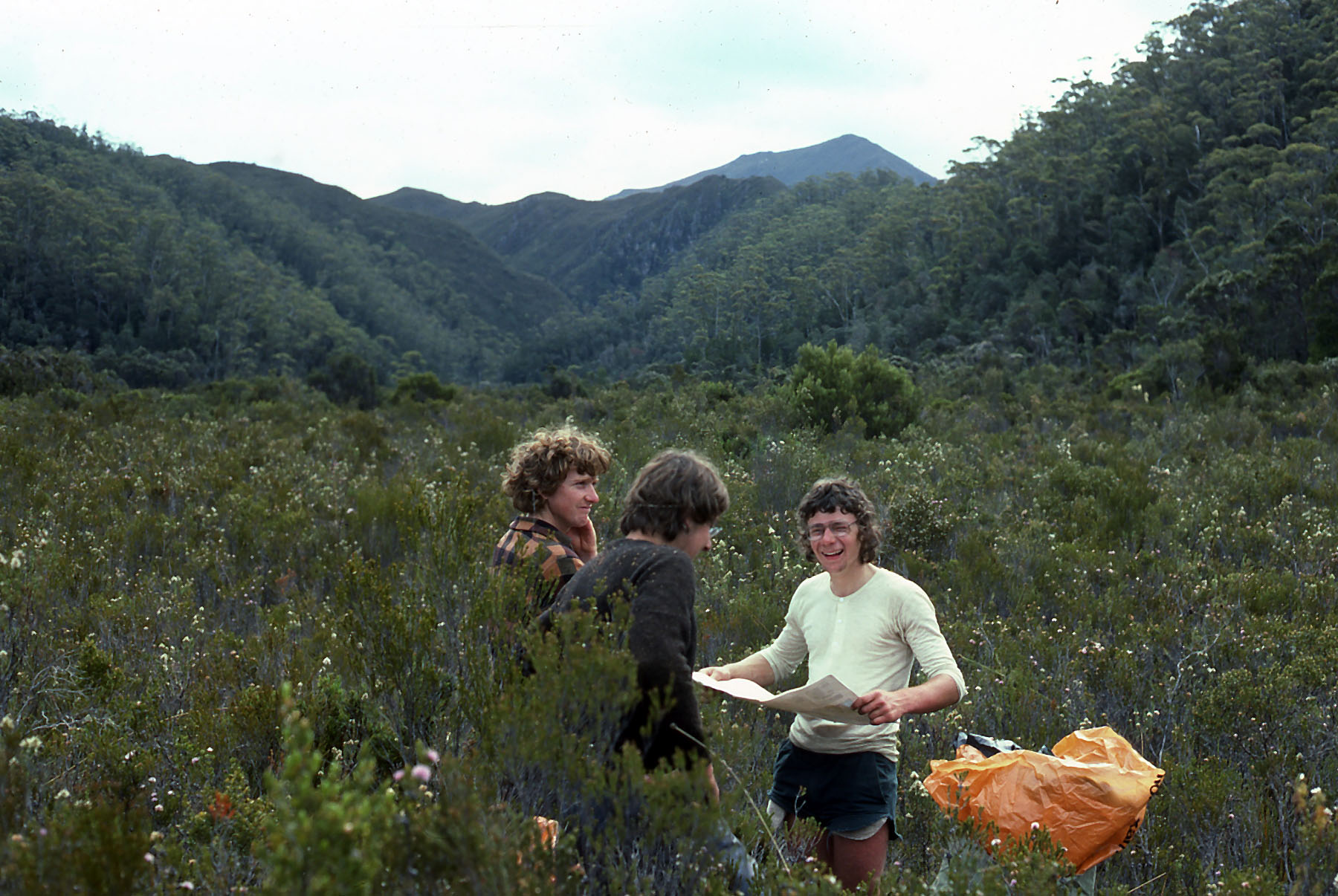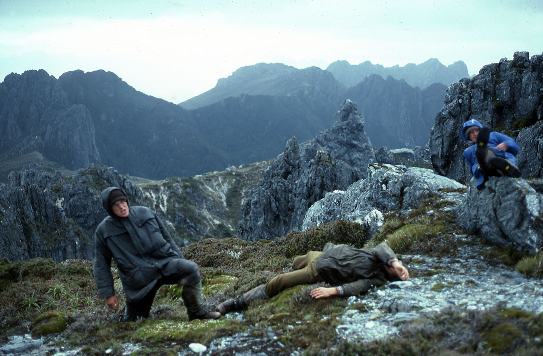 So how was the Old? We missed paddles. Our plan to use bush poles was not as good as we hoped. The river was quite sweet, a bit like the Crossing, some easy rapids, and mostly clear of forest on the flanks. How long do you get on the water? About one day only! We left the river near its mouth and walked around Bathurst Harbour to the Ray River. We hoped this part of the journey would be straight-forward, but for us, it was a shocker. Constant gale-force winds compelled us to attempt an inland crossing of the Ray, which we found to be a tangled jungle-infested delta of fast-flowing streams under killer sieves. We had a nightmare time crossing the Ray River, and spent a leech-infested rainy night in the most uncomfortable site I’d experienced to date. Leeches were everywhere. I woke up during a fitful sleep with one latched onto both lips. Rob got one in his eye. He migrated to Europe shortly after, and for many years I addressed letters to him in London to “Ray River” as a cruel reminder of the time we spent there.