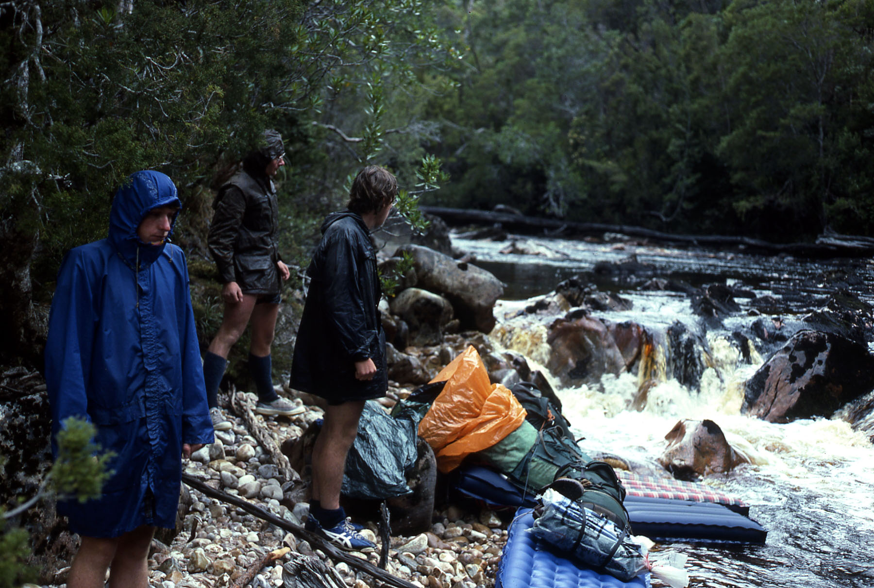Our return to Scott’s Peak was far from straight-forward, as the rain lashed us from Spring River to the Crossing. The Crossing was far too dangerous to cross, even with lilos, and we were forced to camp on the button grass tussocks about 100m back from the riverine forest and regular flood line. Eventually we walked out to Scott’s Peak on day sixteen of twelve, with little food remaining. These days we would do it faster, stronger, more purposefully, better equipped, yet those formative trips served a valuable purpose for me, and I’m still hooked on our Tasmanian wild rivers.